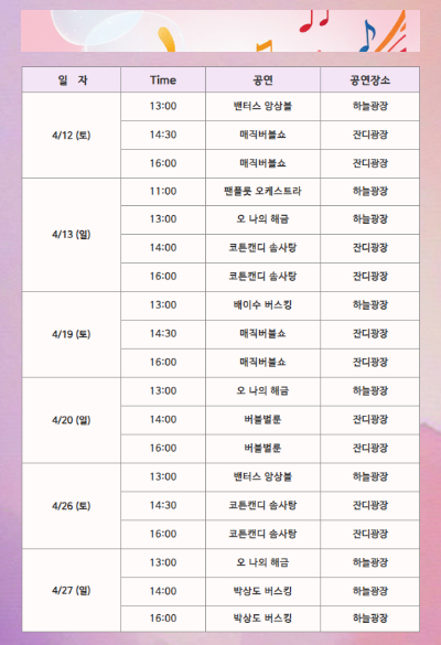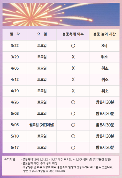 - 기간: 3월 22일(토) ~ 5월 25(일)