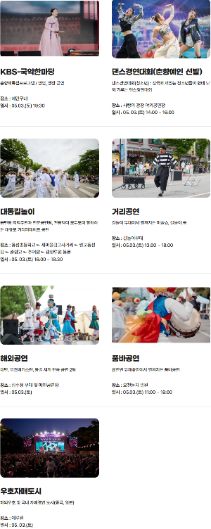 - 춘향국악대전: 전통 국악의 아름다움을 느낄 수 있는 경연 대회