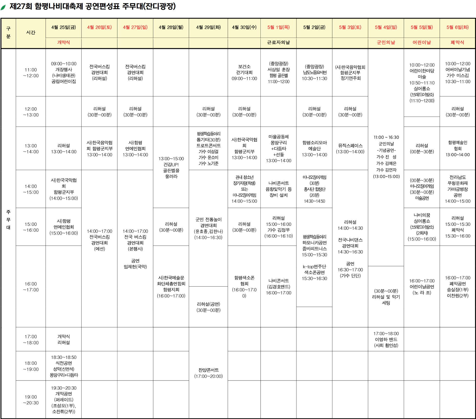 - 행사명: 제26회 함평 나비대축제