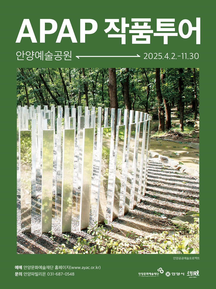 2025년 APAP(안양공공예술프로젝트) 작품투어는 안양문화예술재단이 주관하는 공공예술 감상 프로그램으로, 전문 도슨트의 해설과 함께 안양 곳곳에 설치된 예술작품을 감상할 수 있는 기회를 제공합니다.